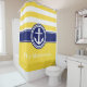Pineapp Yellow Navy Blue Nautical Stripe Anchor CB Duschvorhang