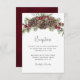 Diese elegante winterbezogene Hochzeitskarte mit Aquarell, Kiefernzapfen und immergrünen Ästen, die mit roten, heiligen Beeren angereichert sind. Auf der Rückseite ist eine bordeauxfarbene Aquarellstruktur. Finden Sie die Erholung der Hochzeitseinladung und mehr passende Produkte in der Sammlung, oder schreiben Sie mir durch Zazzle Chat, wenn Sie Design-Anpassungen oder mehr passende Produkte benötigen.