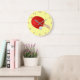 A stylish light yellow Wall Clock with dark pink numerals, and a digital illustration of a ping pong paddle and ball. Available in other options. Visit our store for more Wall clocks and other Gifts.
