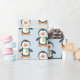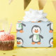 Pingouin mignon en papier cadeau bleu et vert
