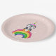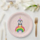 Prato de papel com ilustração de um pinguim unicórnio fofo.