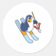 Pinguin als Skifahrer mit Ski Runder Aufkleber