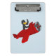 Zwischenablage mit Design mit Illustration eines Pinguins mit rotem Flugzeug; illustriert von Radka Kavalcova / MaxiHarmony