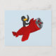 Postkarte mit Design mit Illustration eines Pinguins mit rotem Flugzeug; illustriert von Radka Kavalcova / MaxiHarmony