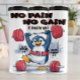 Diese lustige und motivierend Grafik zeigt einen glücklichen Pinguin, der einen großen Grill hebt. Das Design beinhaltet den bekannten Satz "NO PAIN NO GAIN" und andere motivierend Slogans, die eine leichtgearbeitete und energetische Illustration schaffen, die perfekt für ein Workout oder ein Design mit Fitness geeignet ist.