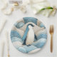 Pinguin in Cream Blue Abstrakt Waves Pappteller