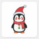Pinguin in einer Weihnachtsmannmütze Quadratischer Aufkleber