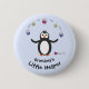 Oma's kleiner Helfer: ein niedlicher Pinguin, der bunte Kuchen jongliert. Oops, ein Kuchen ist auf den Boden gefallen! Der Text ist anpassbar, sodass dies zum Beispiel "Mommy's spielerischer Pinguin" werden kann, oder Sie können einen Namen hinzufügen. Der Hintergrund der Schaltfläche ist blass blau.