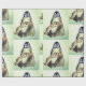 Niedlicher Penguinserwachsener und Baby Penguin, der Verpackungspapier zeichnet.