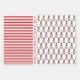 Pinguin, Panda, Bär und rote Streifen Umhüllungspapierblätter. Ein Blatt zeigt ein niedliches Muster von Pinguinen und roten Streifen. Der zweite zeigt ein Panda-Muster und der dritte einen Bären. Es gibt auch den Text "Frohe Weihnachten" in rot auf einer weißen Band auf allen Blättern. Personalisieren Sie es mit Ihrem Text.