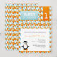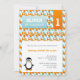 Eine moderne Pinguin-Party Einladung mit Pinguin-Illustration und farbenprächtigem geometrischem Hintergrund. Ideal zum Geburtstag oder zum Winter Party.