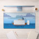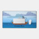 Ein Schreibtischmatte mit einem Mauskissen, auf dem zwei niedliche blaue Pinguine dargestellt sind, die auf einem kleinen Boot im offenen Meer Fische fangen. Die Karte verfügt über eine Beschriftung mit bearbeitbarem, benutzerdefiniertem Text. Einer meiner Cartoon in der Cartoon-Serie von Blizzard Buddies. Karo in meinem Laden für niedlichere Illustrationen aus der Antarktis und der Arktis.