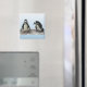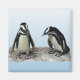 Dieser Magnet verfügt über zwei bezaubernde afrikanische Pinguine, die auf einem Felsvorsprung stehend sind. Sie sind wasserfreie, fliegenlose Vögel, deren Flügel zu Flossen geworden sind. Jede hat einen schwarzen Streifen und schwarze Flecken auf der Brust. Das Muster der Flecken ist für jeden Pinguin einzigartig, genau wie menschliche Fingerabdrücke. Sie haben rosa Drüsen über den Augen und rosa und schwarze Füße.