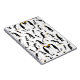 Ein schwarz-weißes Pinguinmuster. Vögel zeigen sich in ihrem angemessenen Maßstab gegeneinander. Es sind König Pinguine, Kaiserpinguine, kleine Pinguine, Makaronpinguine, Pinguine mit Schöpfung, südafrikanische Pinguine und andere.