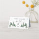 Elegante gefaltete Platzkarte mit Darstellung von Kiefern im Aquarellstil. Innenkarte - abfallender schneesicherer Hintergrund. Sie können diese Karte für jedes Party verwenden - Jubiläum, Weihnachts- und Neujahrsfeiern, Geburtstag, Kinderdusche oder Brautparty, Verlobung, Probe Dinner Party