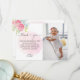 1. Geburtstag Foto Dankeschön-Karte mit rosafarbenen Blumenblättern und Foto-Design Ihres Mädchens zum ersten Geburtstag.