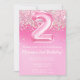 Invitation Pink 2nd Birthday Girly Pink Parties scintillant anniversaire invitation pour une fille de 2 ans avec écriture de script moderne et des ballons amusants en feuille de papier.