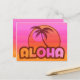 Hawaiianisches Design mit Palmen und Sonnenuntergang in Rosa und Orange. Im Text im Retro-Stil steht ALOHA. Hintergrund für rosa und orangefarbene Farbverläufe. Passen Sie es mit Ihrem eigenen Text an. Behalt dieses Gefühl das ganze Jahr lang. PinkInkArt Original!