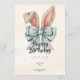 Pink and blue bunny bow birthday invitation featuring a cute and playful design, perfect for a sweet and joyful celebration. Fully customizable for your special event.