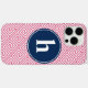Pink and Navy Blue Greek Key Pattern Monogram iPhone 16 Pro Max Hülle