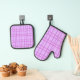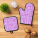 Pink and purple flower checkered pattern ofenhandschuh & Topflappen-Set