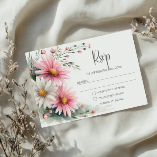 Invite your friends and loved ones to celebrate your union with this pink and white daisies wedding invitation. The customizable text allows you to effortlessly add the bride and groom’s names, wedding date, and the necessary details of your celebration. A variety of paper types and corner styles are available for your unique invitations, along with the option to download if you prefer a digital format.