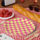 Pink and yellow checkerboard pattern