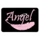 Das ist ein süßes Angel-Design, das auf Bekleidung und Geschenken gut aussehen würde. Der Text "Engel" mit Feder und Halo ist in Rosa gehalten.