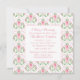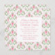 Vintages Jugendstil-Design mit rosafarbenen Tulpen, Weinbergen und Akzenten von rosa Herzen, Muster setzt sich auf der Rückseite der Karte fort. Das ist ein eleganter Stil für Ihr Retro-Baby-Duschthema.