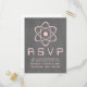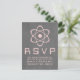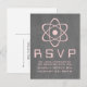 Niedliche und nerdige Atomic Chalkboard Wedding Response Card mit einem einfachen Atomsymbol in hellrosa auf einem Chalkboard-Look Hintergrund. Diese geeky und lustige Hochzeit RSVP Postkarte ist perfekt für das Wissenschaftsenthusiasten Paar! Einfach anzupassen, fügen Sie einfach die Details Ihrer Hochzeit in den Bereichen zur Verfügung gestellt. Klicken Sie auf "Anpassen", um weitere Personalisierungsoptionen zu erhalten.