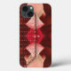 Das Original abstrakte Kunstwerk von ZoeSPEAK auf diesem iPhone 13 Case wird im Stil eines Kupplungssacks oder Abend Handtaschen gemacht. Die roten und blassrosa Gewebeschichten aus strukturiertem Stoff in Rost- und Rosttönen wurden aus einem originalen Foto von Bananen-Blätter gefertigt. Die Tasche hat eine Umschlagklappe getrimmt in einem tiefen roten Band aus Rost, umgeben von Perlrosa Perlen. Winzige rosa Perlen in vertikalen Reihen bedecken die Klappe. In der Mitte der Handtasche befindet sich der Klappverschluss, eine perlrote Scheibe mit goldener Kante und eine rosa Perle in der Mitte. Hier unten ist ein Perlrosa-Teardrop.