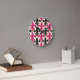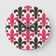 Pink Black Baroque Fleur-de-lis Pattern Design Runde Wanduhr