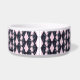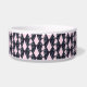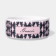 Elegante Pink und Black Bow Dog Bowl tragen den Namen Ihres Haustieres in kursiven Skript-Schriftart. Trendy coquette schwarze Bogen Muster auf hellrosa Hintergrund.