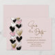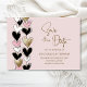 Let your friends and family know about your special day in style with this pink, black and gold hearts wedding save-the-date card. The easy-to-use text templates make adding all the necessary information a quick and simple task. With a variety of paper types and corner styles to choose from, you can create truly unique cards that reflect your individuality, along with the option to download if you prefer a digital format.