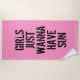 Rosa und schwarze Typografie Strandtuch. Mädchen wollen nur die Sonne haben.