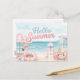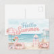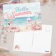 Pink Blue Gingham Hello Summer Beach Coastal Postkarte