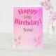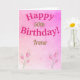 Hübsche benutzerdefinierte Fünfzigste Geburtstagskarte mit rosa Blume auf bleibendem rosa Hintergrund.