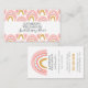 Ein hübscher rosa und goldfarbener Boho Regenbogen, um Ihr Geschäft zu fördern. Diese niedliche böhmische Visitenkarte eignet sich perfekt für ein Kinderzimmer, ein Kinderzimmer-Dekorationsgeschäft oder ein Handwerksgeschäft, das sich auf Babywäsche spezialisiert hat (z.B.!). Das Design ist weich und hübsch mit einem passenden Design auf der Rückseite. Personalisieren Sie Ihre Geschäftsdaten (einschließlich Ihrer Mission oder Ihres einzigartigen Verkaufspunktes).
