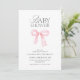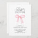 Celebrate the upcoming arrival of a sweet baby girl with this timeless and elegant baby shower invitation. Featuring a soft pink satin-style bow and graceful script typography, this design blends classic charm with modern minimalism. The clean white background allows the delicate details to shine, creating a refined look that’s perfect for a traditional, chic, or feminine baby shower theme.