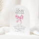 Celebrate the upcoming arrival of a sweet baby girl with this timeless and elegant baby shower invitation. Featuring a soft pink satin-style bow and graceful script typography, this design blends classic charm with modern minimalism. The clean white background allows the delicate details to shine, creating a refined look that’s perfect for a traditional, chic, or feminine baby shower theme.
