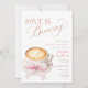 Feiern Sie die zukünftige Braut mit dieser charmanten Liebe Braut Braudusche Einladung. Mit einer Aquarelltasse mit Latte Art und einem zarten rosa Bogen ist dieses Design perfekt für Kaffeeliebhaber. Ein süßes und gemütliches Thema, das den Ton für ein elegantes und modernes Brautparty Set.