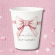Mit dieser hübschen, personalisierten Coquette Baby Shower Papiertasse heben Sie Ihre Pink Bow Baby Dusche auf! Mit einem staubigen, rosa Aquarellbogen vor einem knalligen weißen Hintergrund strahlt dieses Design Eleganz und Charme aus. Der Text ist in einer raffinierten Mischung aus modernen und kalligraphischen Skript-Schriftart in einem warmen Mocha-Ton gestaltet und ergänzt perfekt das lustige Coquette-Thema. Diese Pink Bow Baby Shower Papiertassen sind eine stilvolle und praktische Wahl für die Getränke und verleihen Ihrem Fest eine delikate Touch.