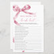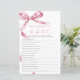 Pink Bow "Who Knows The Bride Best" Game - Mit dieser Spielkarte mit einem zartem, rosa Bug-Design macht das Brautparty Spaß. Dieses "Who Knows The Bride Best"-Spiel eignet sich hervorragend, um Gäste zu begeistern und die Braut-zu-Sein-Stil zu feiern. Mit seiner eleganten Schrift und weiblichen Akzenten ist diese Spielkarte eine schöne Ergänzung zu jedem Brautparty-Thema und macht sie zu einem unvergesslichen Sake für die Braut und ihre Lieben. *** Bitte geben Sie H121 in den Shop Suche nach allen passenden Artikeln *** oder besuchen Sie unsere Pink Bow Collection. *** Dieses hochwertige Design ist einfach zu anpassen, um Ihre Hochzeitsfarben, Stile und Thema. Für weitere Anpassungen klicken Sie bitte auf den Link "Edit using Design Tool" und verwenden Sie unser Designwerkzeug, um diese Vorlage zu ändern. Wenn Sie Hilfe oder passende Artikel benötigen, kontaktieren Sie mich bitte.