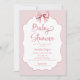 Elegante pink Bow Mädchen Dusche Einladung. Schöne, zauberhafte, rosa Kalligraphie mit bemalten Schleifen und Bugmustern auf der Rückseite.