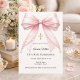 Pink bow ivory pearls girl elegant First Communion Einladung