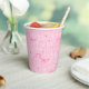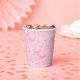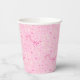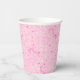 Niedliche Babybrause oder Geburtstagsparty-Tasse mit Darstellung von rosa Bändern und Herzen.