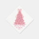 These festive napkins feature a whimsical pink Christmas tree beautifully adorned with a large pink bow and delicate purple, pink, and aqua ornaments. Below the illustration, it reads “Merry Christmas”, followed by a customizable line for your family name and another editable line for the year. Set against a crisp white background, this design brings a soft and stylish look to your holiday table setting.
