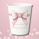 Elevate your She's Tying the Knot Brautparty mit diesem charmanten, personalisierten Bow Brautparty Papier Tasse! Mit einem staubigen, rosa Aquarellbogen vor einem knalligen weißen Hintergrund strahlt dieses Design Eleganz und Charme aus. Der Text ist in einer raffinierten Mischung aus modernen und kalligraphischen Skript-Schriftart in weichem Rosa gestaltet und ergänzt perfekt das lustige Coquette-Thema. Diese Pink Bow Brautparty Papiertassen sind eine stilvolle und praktische Wahl, um Getränke zu servieren. Sie verleihen Ihrer Feier eine delikate Touch Romantik.