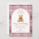 Pink Bow Teddy Bear Tartan Birthday Einladung