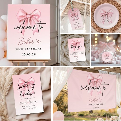 Celebrate a stylish milestone with these elegant pink bow birthday paper plates, personalized with “Sofia is Twelve.” Featuring a soft blush background and a delicate hand-painted bow illustration, these plates are perfect for a girl’s 12th birthday party, princess theme, coquette aesthetic, or chic pastel celebration. Ideal for cake, desserts, and party treats, they add a graceful touch to your birthday table décor. Perfect for moms planning a classy, feminine.